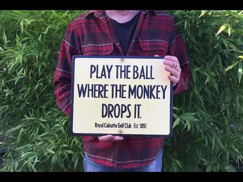 Play The Ball Where The Monkey Drops It | Historical Golf Sign | Handmade Screen Printed | Golf History | Britain India | Golf Course Sign Replica